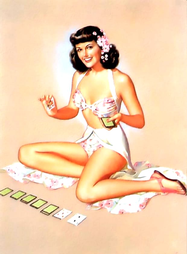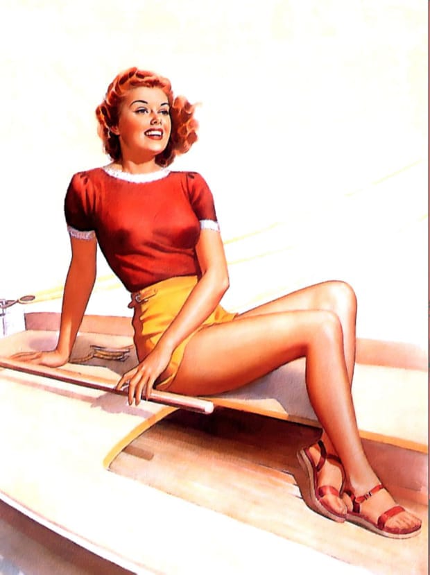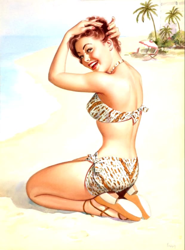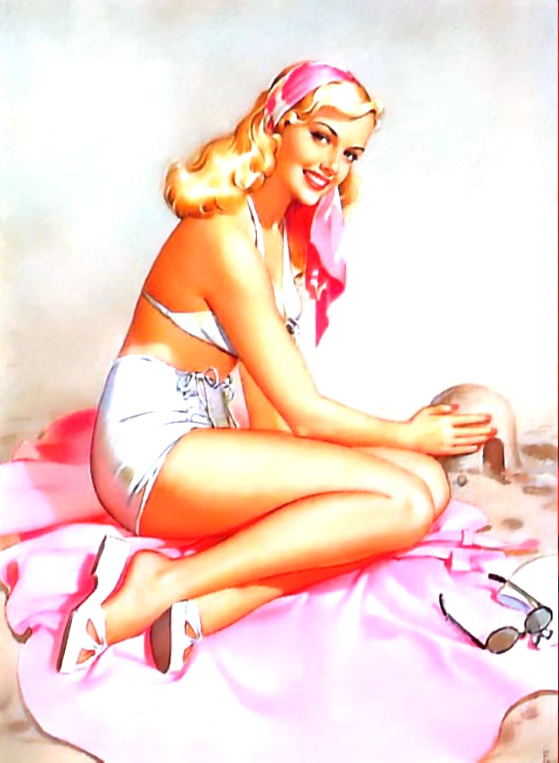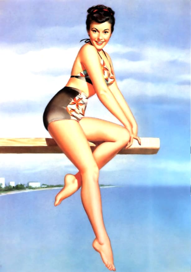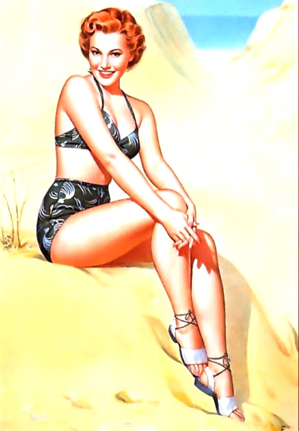 Peter Frush was an American illustrator best known for his vibrant mid-twentieth-century pin-up art and glamour paintings. Active during the golden age of American illustration, Frush developed a distinctive style that blended elegant realism with playful charm, capturing the spirit of classic 1940s and 1950s pin-up culture. His artwork often featured confident, sun-kissed beauties in dynamic poses, reflecting the optimism and bold colour palettes of post-war commercial art. Today, Peter Frush’s vintage pin-up illustrations remain highly collectible and admired for their timeless appeal. This gallery presents beautifully restored Peter Frush pin-up girls, available as free high-resolution downloads for collectors and enthusiasts of classic retro glamour art.