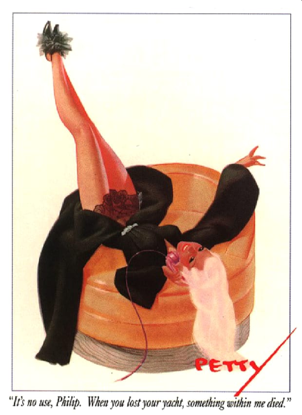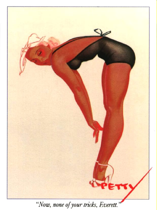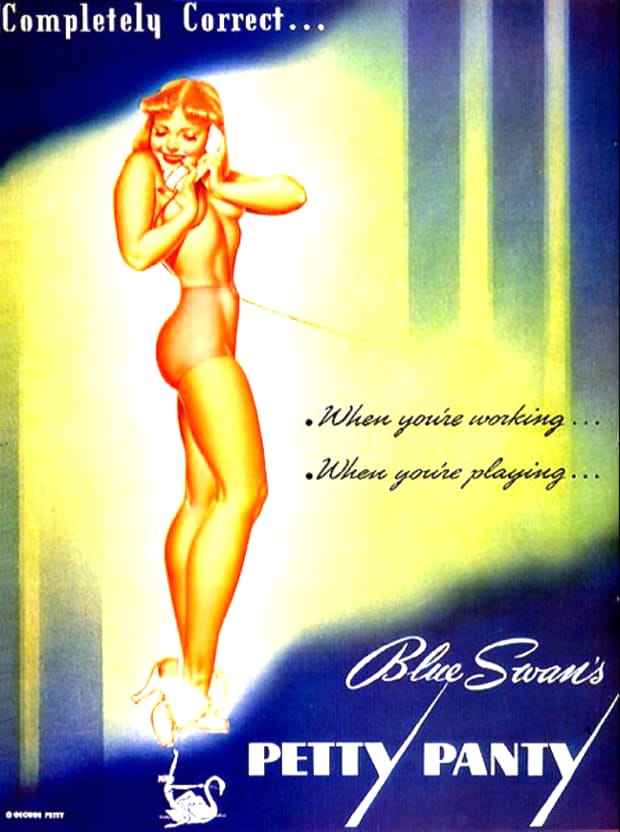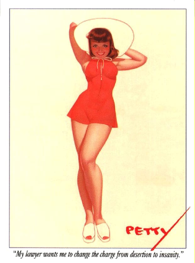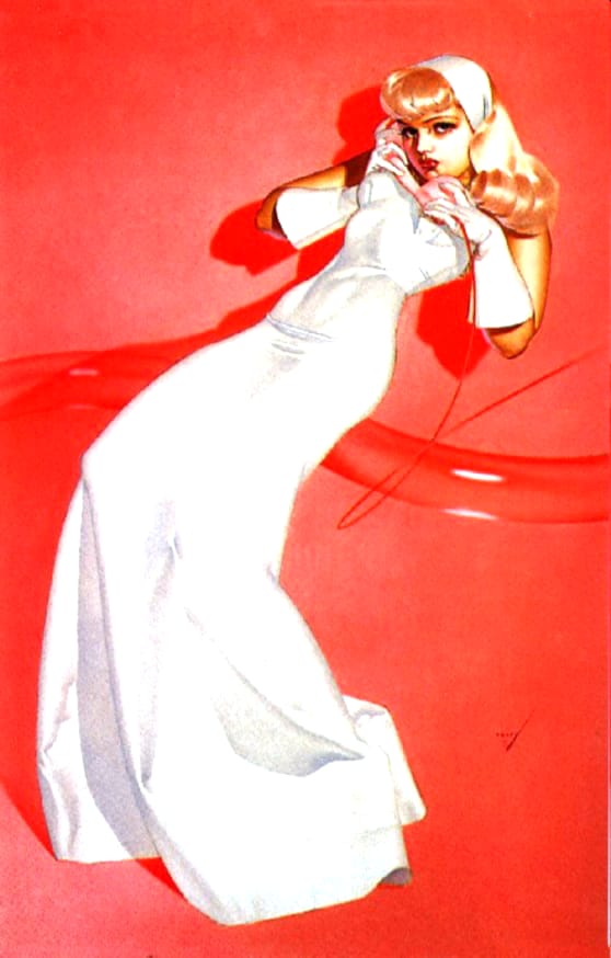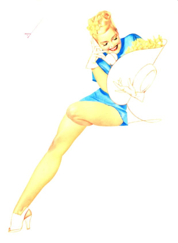 Discover more classic Petty Girl artwork by George Petty, celebrated for its graceful line work, vibrant colour, and iconic mid-century aesthetic. These vintage pin-up images reflect the era’s magazine illustration style and wartime morale art influence. All designs are restored for clarity and available as free downloadable retro pin-up prints.