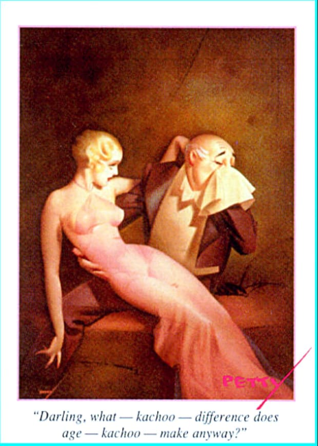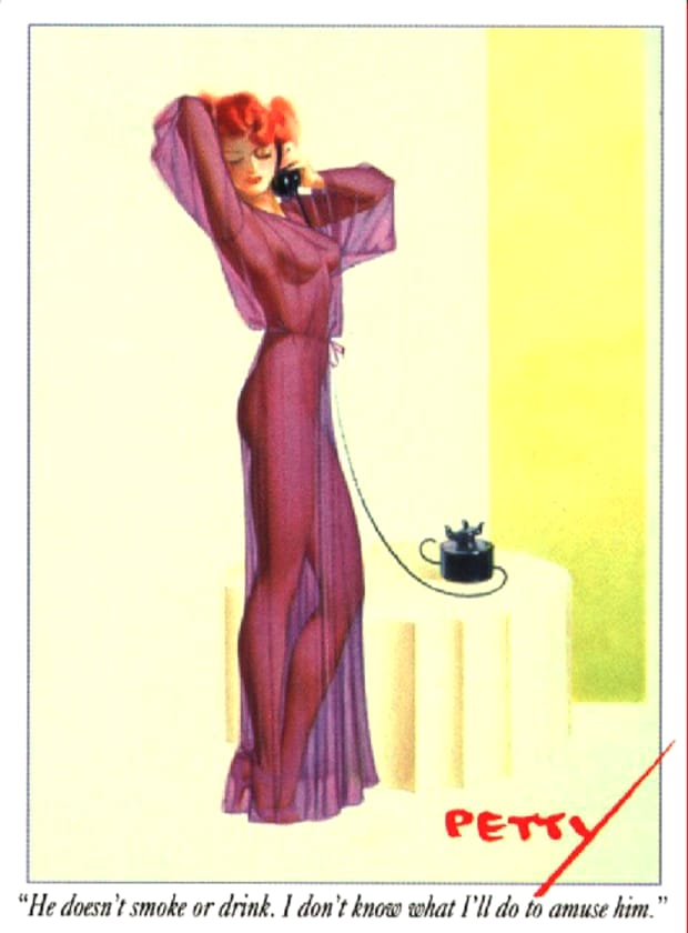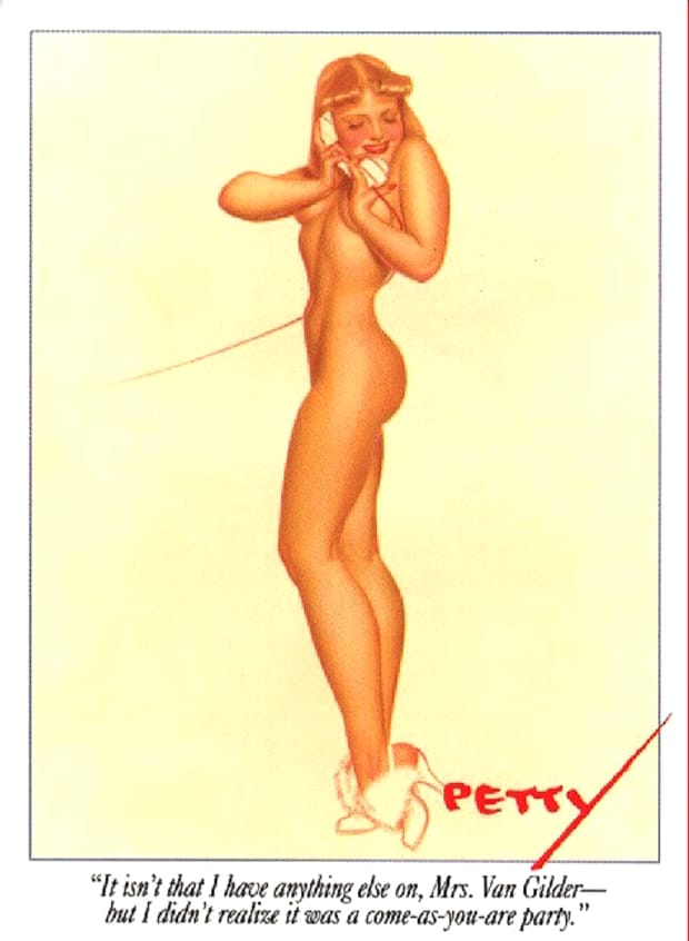 This fourth gallery page presents additional George Petty pin-up girl illustrations, showcasing the refined glamour and polished elegance that made his work internationally recognised. From calendar art to magazine covers, these vintage pieces represent a defining chapter in American pin-up history. Enjoy free high-quality printable Petty Girl artwork for your retro art collection.
