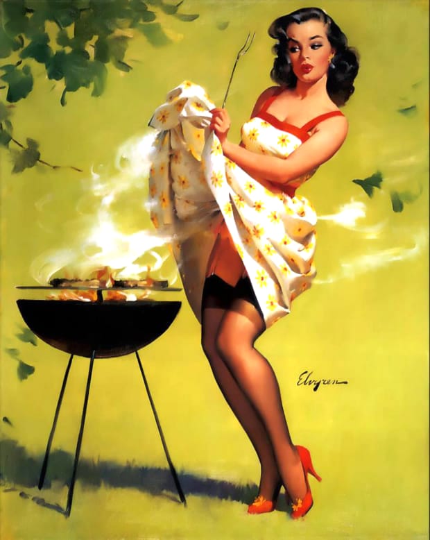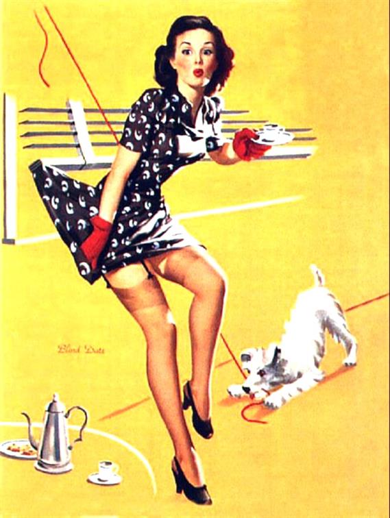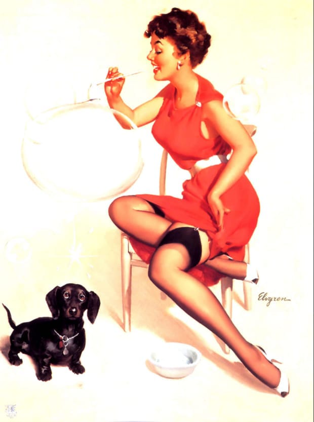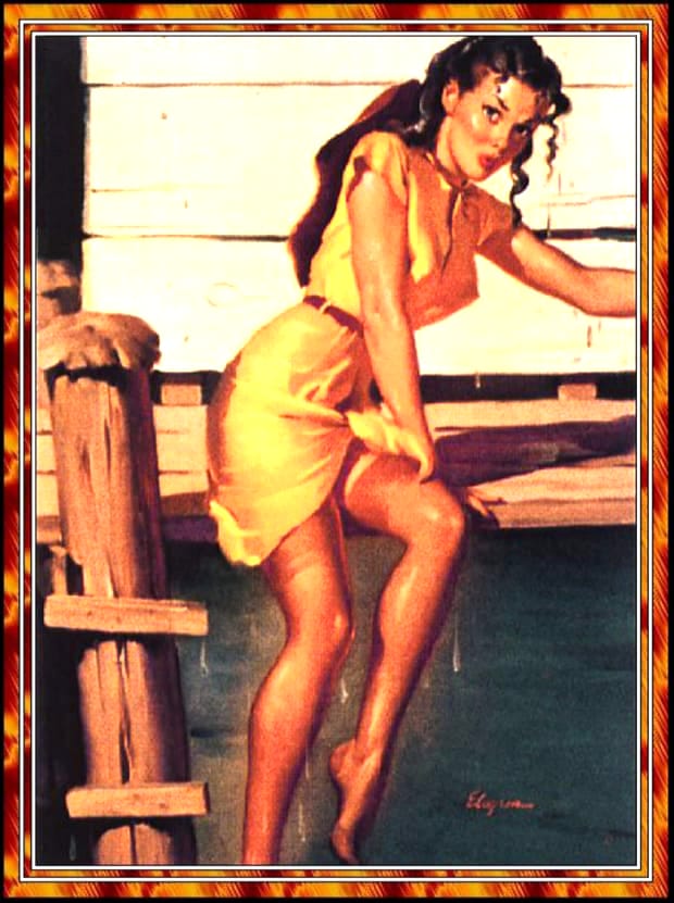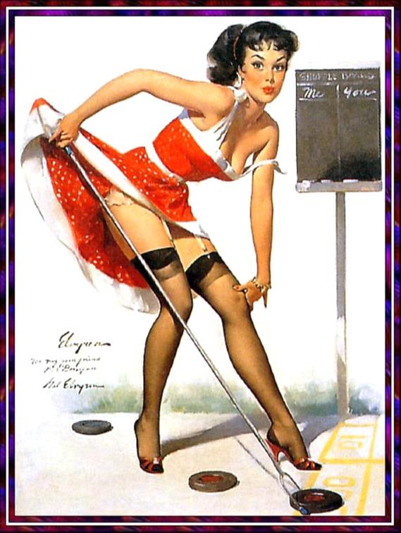 From playful beach scenes to glamorous studio settings, Gil Elvgren’s paintings captured the spirit of mid-century optimism and style. His ability to blend humour with elegance made his work timeless. This page features more restored Elvgren pin-up girl illustrations, celebrating the enduring appeal of classic American glamour art.