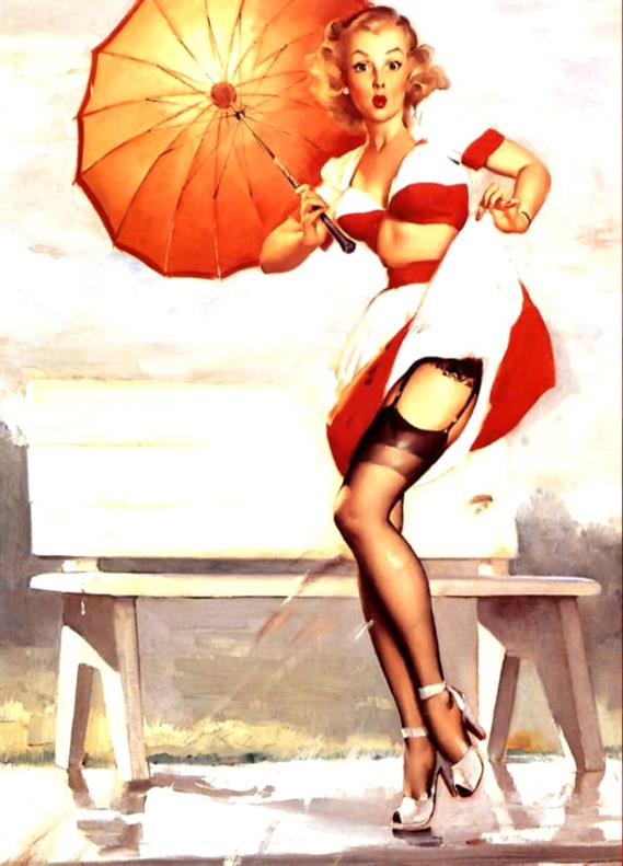 Following his formal art training at the American Academy of Art in Chicago, Gil Elvgren quickly rose to prominence in commercial illustration. Throughout the 1940s and 1950s, his glamorous “girl next door” imagery became a defining feature of American advertising and calendar art. This page features more iconic Gil Elvgren pin-up girls, highlighting his masterful use of colour, light, and expressive storytelling. All images are presented as free high-resolution vintage pin-up prints.