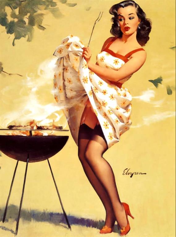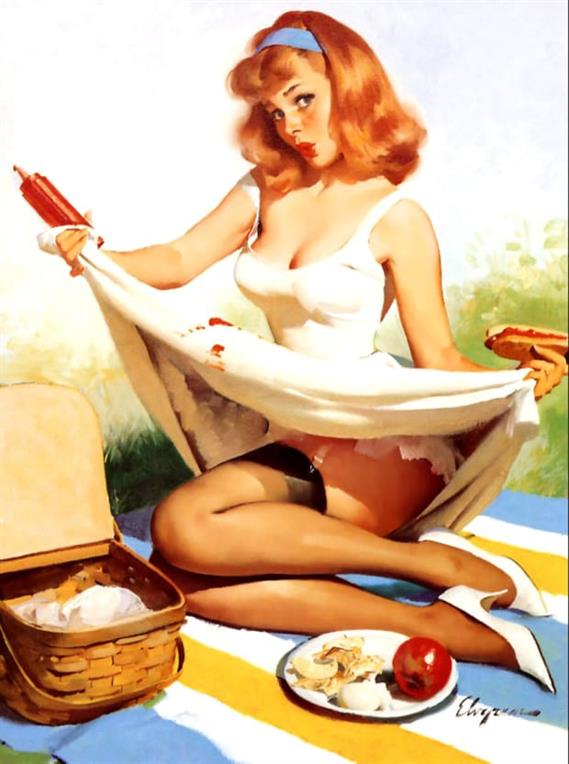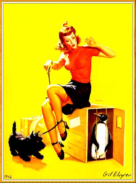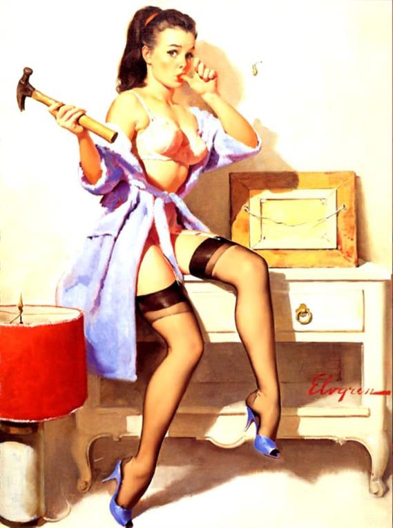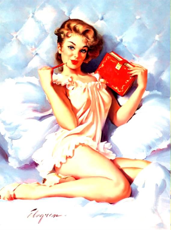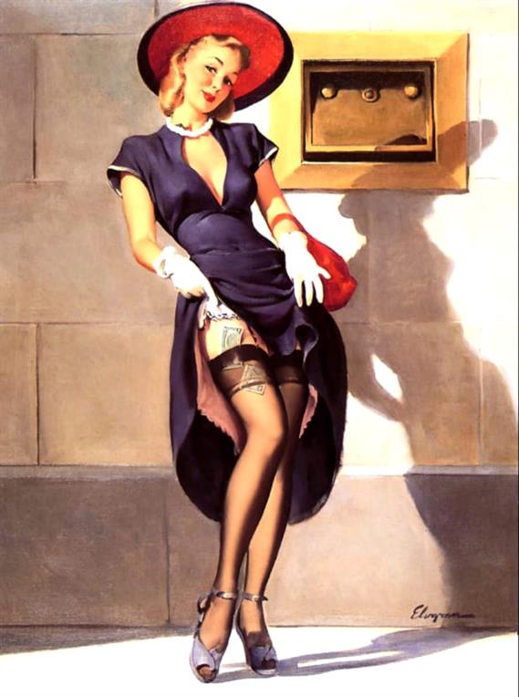 During the height of his career, Gil Elvgren worked alongside other legendary illustrators while establishing his own unmistakable style. His paintings captured playful mishaps, windswept dresses, and radiant expressions that became hallmarks of classic mid-century glamour art. This gallery page presents beautifully restored Elvgren pin-up artwork, celebrating one of the most influential figures in vintage American illustration.